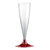 Flute made of PS, ideal for serving and consuming Cava at any event. It is a 140 ml capacity glass, transparent with a red foot.