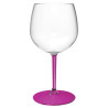 Transparent balloon glass with fuchsia foot made of tritan. Discover the safest and most resistant way to serve and enjoy your gin and tonics and cocktails.