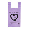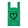 Plastic T-Shirt Bag of 42x53 cm. Contains 70% recycled material, green color with "We love Green!" design.