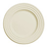 Round Natural Plate 23 cm in diameter with wavy emboss on the edge. Manufactured with Sugar Cane and suitable for food contact.